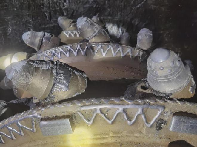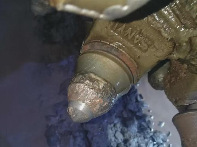 在完成1.8米的掘进任务后,双方技术人员对炮头上的截齿磨损情况进行了详细检查和记录。结果清晰地呈现了两种产品性能的巨大差异: