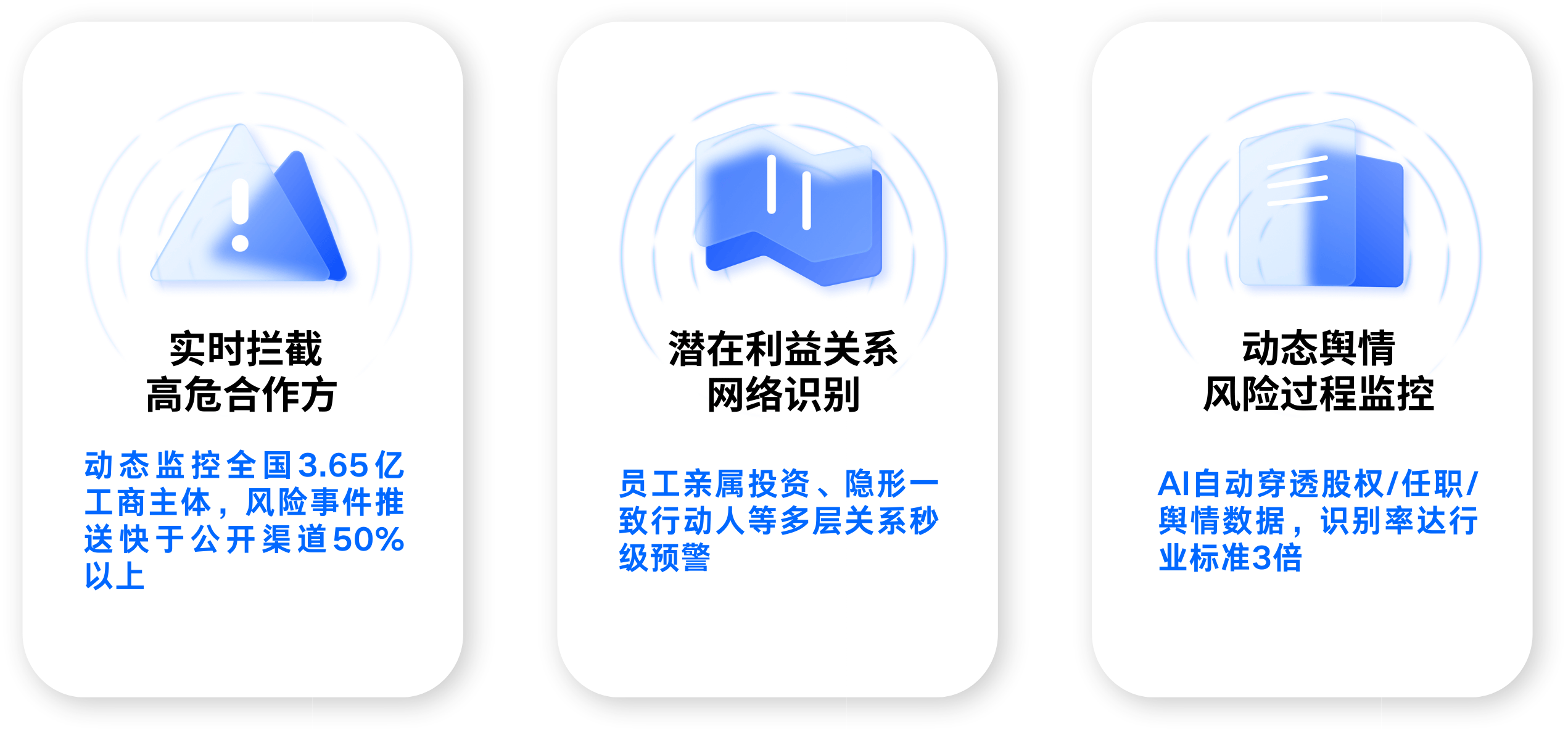 智能准入评估,准入排查灵活配置客商准入模型,分级管理准入门槛;参考我司企查分综合了解客商画像,准入报告量化评分,严把风险入口,标准化准入流程,确保客商质量。