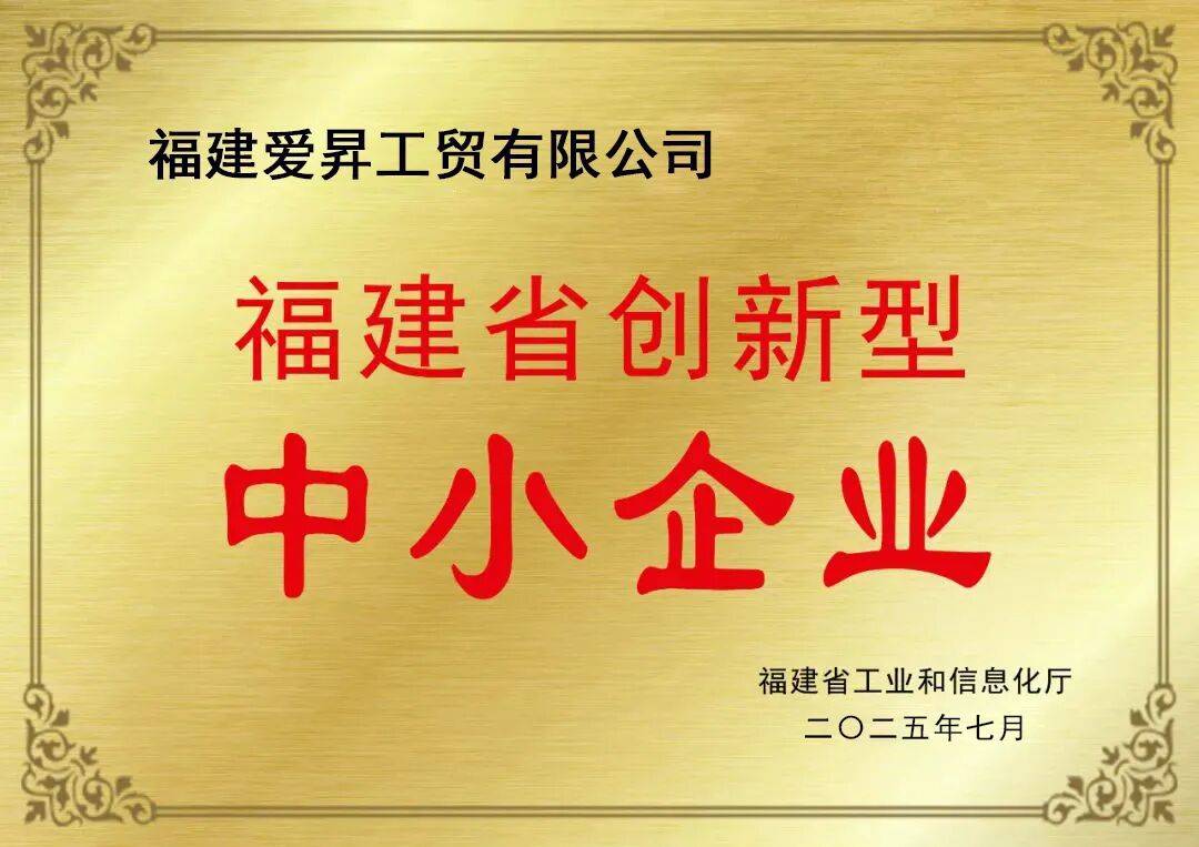 值此国庆中秋佳节来临之际,爱昇工贸喜传捷报:凭借卓越的创新能力、敏锐的市场洞察力以及诚信可靠的服务,公司成功荣获2025年“福建省创新型中小企业”荣誉称号!这标志着爱昇工贸在科技创新能力、成果转化效率及产业贡献度等方面获得政府相关部门的高度认可,充分展现了企业稳健的发展态势、强劲的产业韧性以及积极履行社会责任的企业担当。